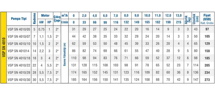 | Özellikler | : | Derin Kuyu Dalgıç Pompası |